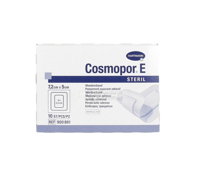 favorite_border Ajouter à mes favoris favorite Supprimer de mes favorisCosmopor E adhésive 20x10cm boîte de 25 - Support nontissé blanc. - Adhésif transparent à base de caoutchouc synthétique / Hotmelt. - Compresse composée de deux couches différentes : une couche de contact avec la plaie constituée d'un filet en polyéthylène pour empêcher la compresse de coller à la plaie et une couche absorbante en viscose pour l'absorption des exsudats de la plaie. - Papier siliconé : papier de protection en contact avec la face adhésive du dispositif. Absence de latex. Absence de colophane.